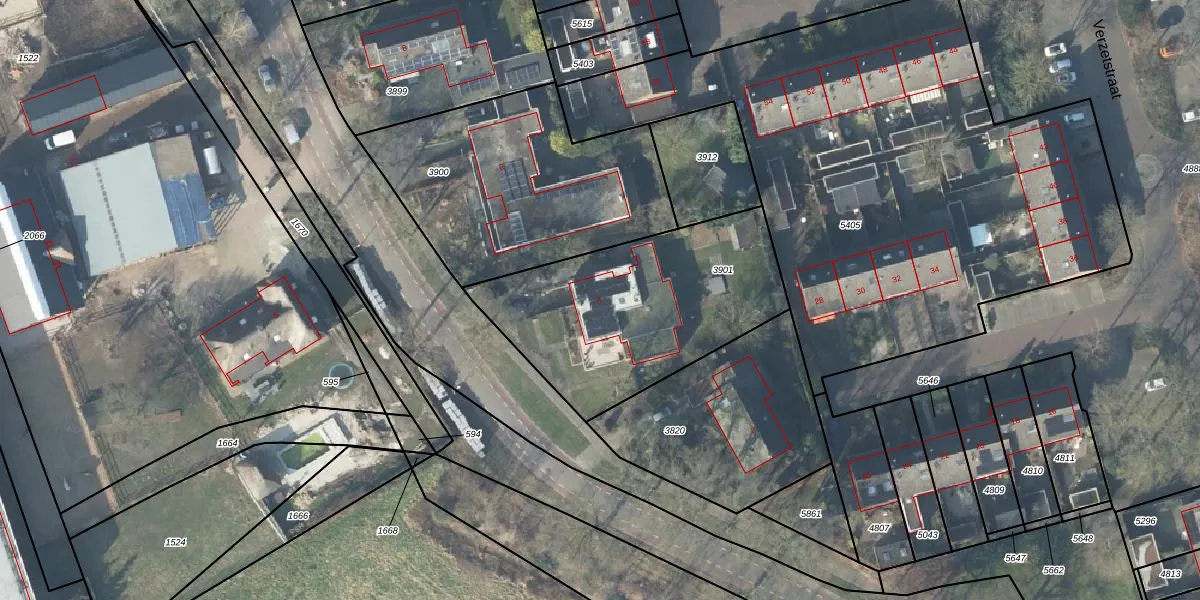 Gebruik de zoekbalk of klik op een perceel voor informatie over de adressen binnen dit perceel.