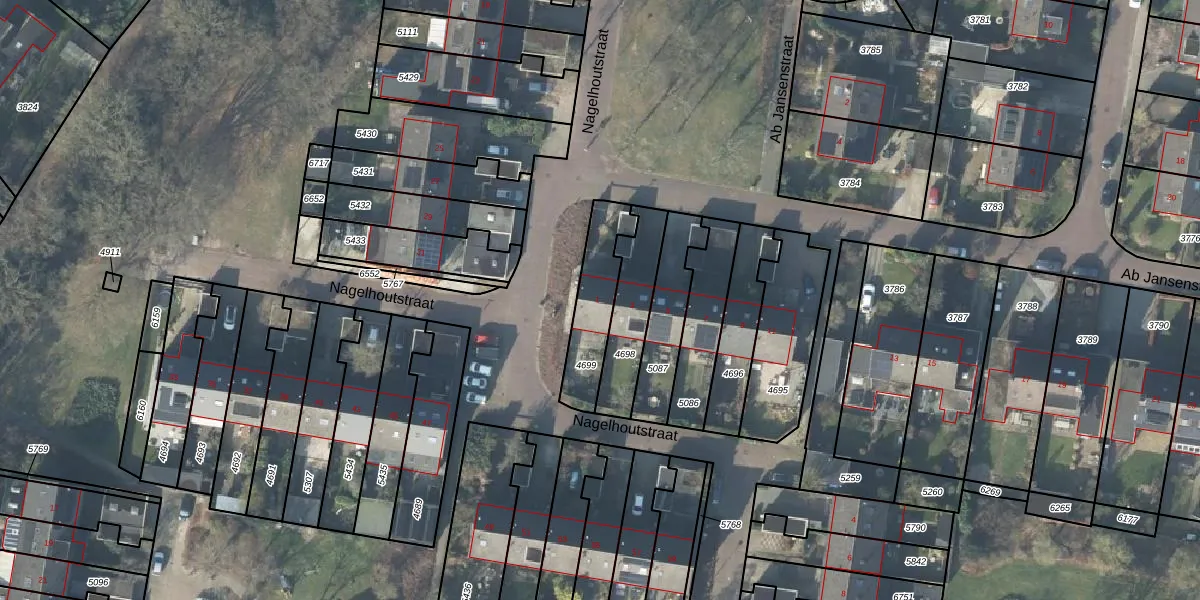 Gebruik de zoekbalk of klik op een perceel voor informatie over de adressen binnen dit perceel.