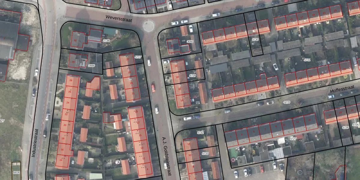 Het perceel waarop A.J. Goldsteinstraat 16 staat heeft een oppervlakte van 6370 m². Dit is een zeer groot perceel. De perceeloppervlakte wordt geregistreerd door het Kadaster. Gedetailleerde informatie over de maten van dit perceel kunt u vinden in het rapport Kadastrale kaart met maatvoering van A.J. Goldsteinstraat 16.