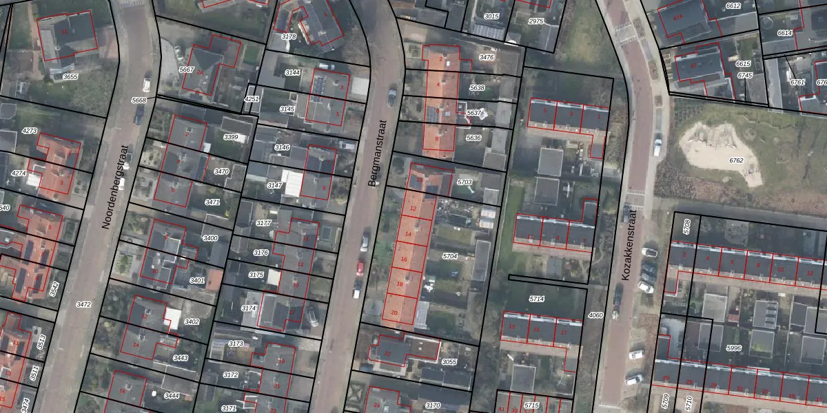 Het perceel waarop Bergmanstraat 12 staat heeft een oppervlakte van 978 m². Dit is een groot perceel. De perceeloppervlakte wordt geregistreerd door het Kadaster. Gedetailleerde informatie over de maten van dit perceel kunt u vinden in het rapport Kadastrale kaart met maatvoering van Bergmanstraat 12.