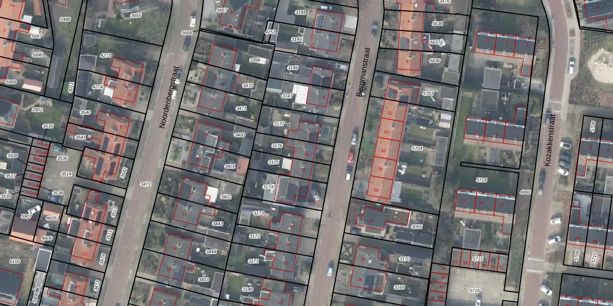 Het perceel waarop Bergmanstraat 13 staat heeft een oppervlakte van 156 m². Dit is een middelgroot perceel. De perceeloppervlakte wordt geregistreerd door het Kadaster. Gedetailleerde informatie over de maten van dit perceel kunt u vinden in het rapport Kadastrale kaart met maatvoering van Bergmanstraat 13.