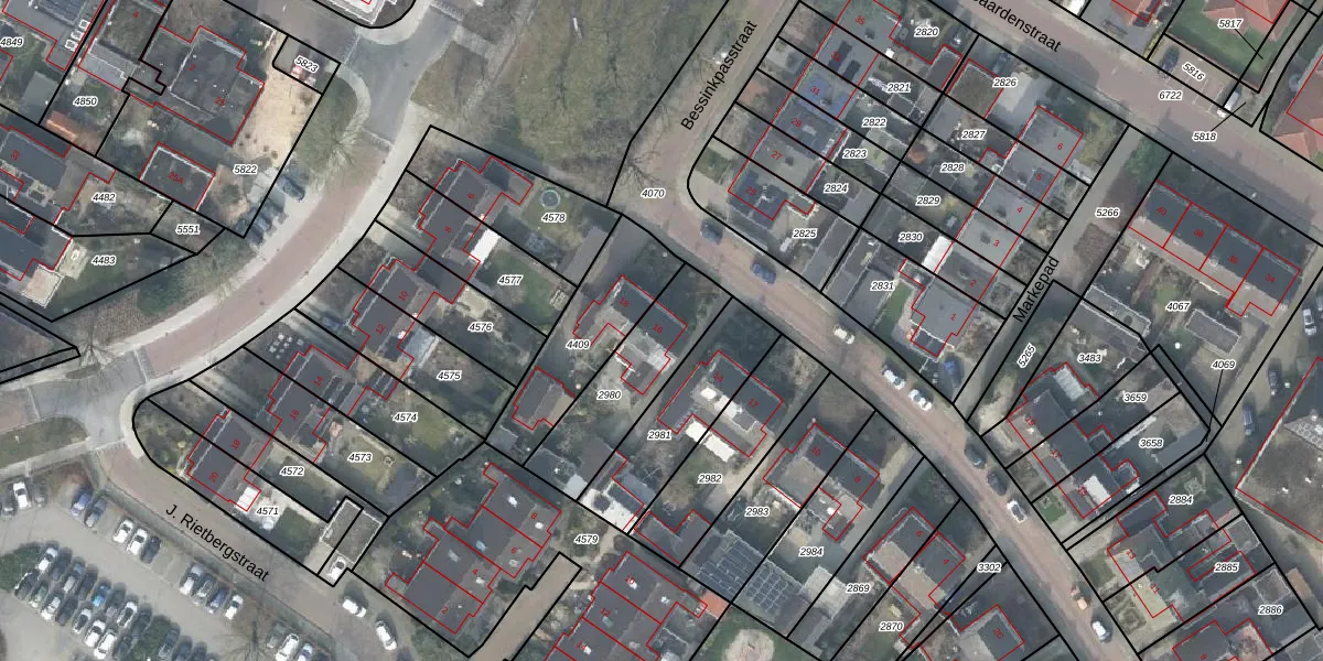 Gebruik de zoekbalk of klik op een perceel voor informatie over de adressen binnen dit perceel.