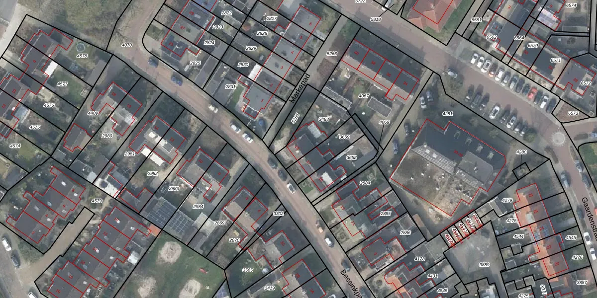 Gebruik de zoekbalk of klik op een perceel voor informatie over de adressen binnen dit perceel.
