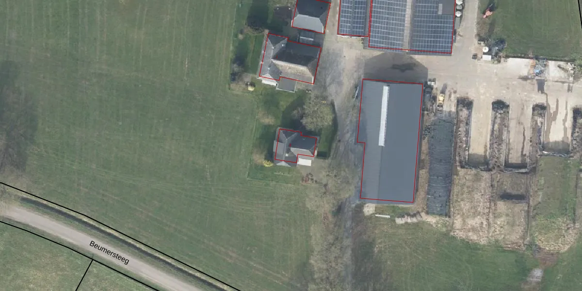 Het perceel waarop Beumersteeg 3 staat heeft een oppervlakte van 6,1 ha. Dit is een zeer groot perceel. De perceeloppervlakte wordt geregistreerd door het Kadaster. Gedetailleerde informatie over de maten van dit perceel kunt u vinden in het rapport Kadastrale kaart met maatvoering van Beumersteeg 3.