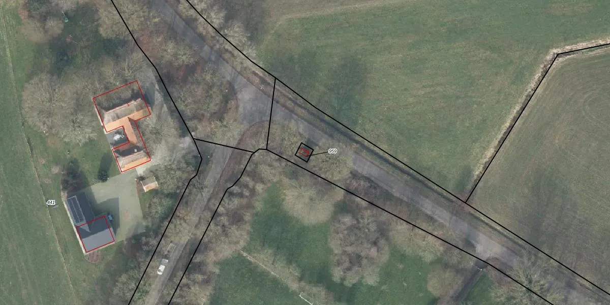 Het adres is gelegen op perceel 959 in de sectie H en de kadastrale gemeente Holten. De kadastrale aanduiding is aldus HTN03-H-959. De gemiddelde perceelgrootte in Holten is 7850,59 m². Dit perceel is kleiner: de perceeloppervlakte bedraagt 20 m². Het grootste perceel in de kadastrale gemeente is 62,1 ha. Het kleinste perceel heeft een oppervlakte van 0 m². Op het perceel bevinden zich geen andere adressen. De huidige grenzen van het perceel zijn digitaal in de Basisregistratie Kadaster (BRK) geregistreerd op 03-04-2001.