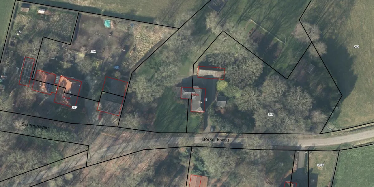 Het perceel waarop Borkeldsweg 10-A staat heeft een oppervlakte van 4800 m². Dit is een zeer groot perceel. De perceeloppervlakte wordt geregistreerd door het Kadaster. Gedetailleerde informatie over de maten van dit perceel kunt u vinden in het rapport Kadastrale kaart met maatvoering van Borkeldsweg 10-A.