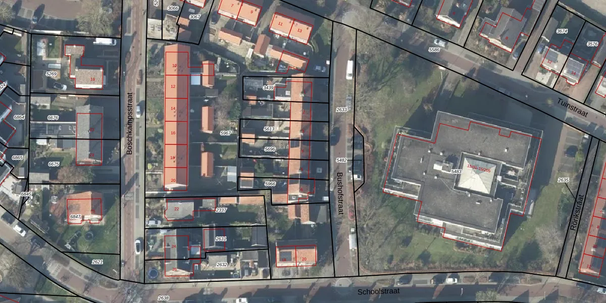 Het perceel waarop Bushofstraat 4 staat heeft een oppervlakte van 185 m². Dit is een middelgroot perceel. De perceeloppervlakte wordt geregistreerd door het Kadaster. Gedetailleerde informatie over de maten van dit perceel kunt u vinden in het rapport Kadastrale kaart met maatvoering van Bushofstraat 4.