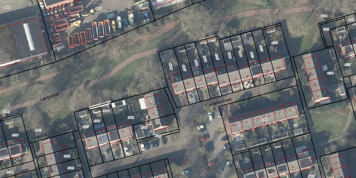 Het perceel waarop Canadastraat 107 staat heeft een oppervlakte van 290 m². Dit is een middelgroot perceel. De perceeloppervlakte wordt geregistreerd door het Kadaster. Gedetailleerde informatie over de maten van dit perceel kunt u vinden in het rapport Kadastrale kaart met maatvoering van Canadastraat 107.