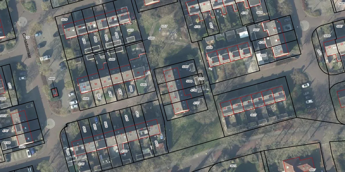 Canadastraat 21 is gelegen op kadastraal perceel HTN03F5084. Deze kadastrale aanduiding is uniek en wordt gebruikt door het Kadaster om eigendomsrechten en andere zakelijke rechten vast te leggen. Het perceel maakt onderdeel uit van de kadastrale gemeente Holten.