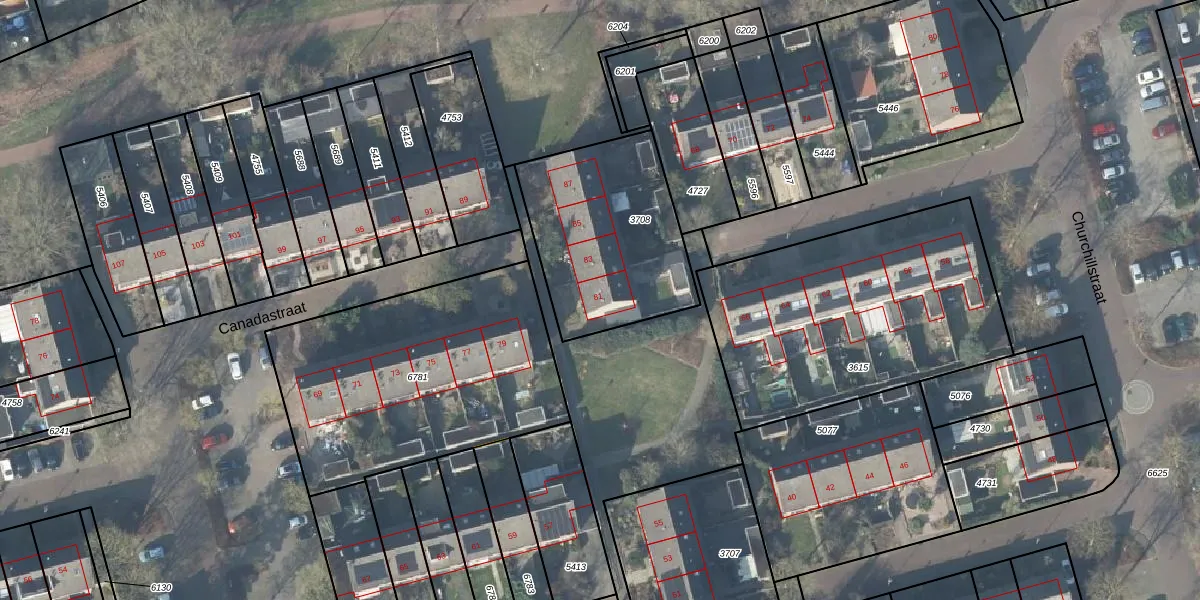 Het perceel waarop Canadastraat 81 staat heeft een oppervlakte van 735 m². Dit is een groot perceel. De perceeloppervlakte wordt geregistreerd door het Kadaster. Gedetailleerde informatie over de maten van dit perceel kunt u vinden in het rapport Kadastrale kaart met maatvoering van Canadastraat 81.