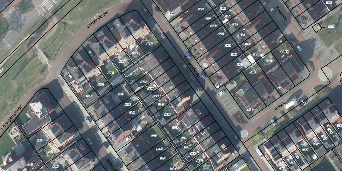 Het perceel waarop Citroenvlinder 18 staat heeft een oppervlakte van 157 m². Dit is een middelgroot perceel. De perceeloppervlakte wordt geregistreerd door het Kadaster. Gedetailleerde informatie over de maten van dit perceel kunt u vinden in het rapport Kadastrale kaart met maatvoering van Citroenvlinder 18.