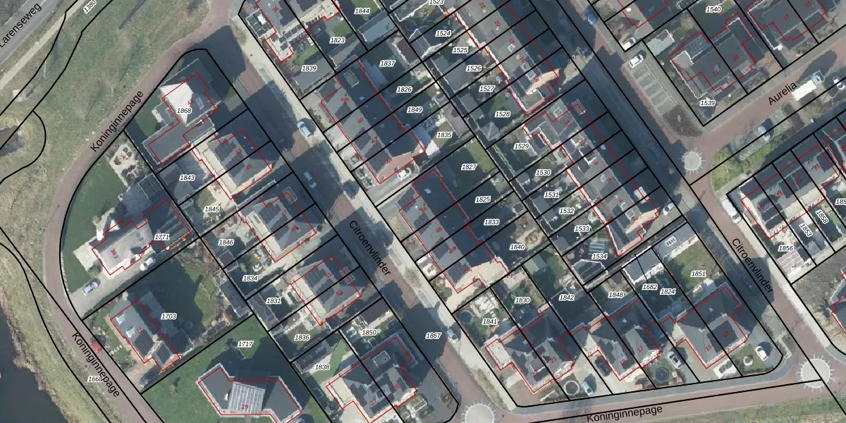 Het perceel waarop Citroenvlinder 46 staat heeft een oppervlakte van 295 m². Dit is een middelgroot perceel. De perceeloppervlakte wordt geregistreerd door het Kadaster. Gedetailleerde informatie over de maten van dit perceel kunt u vinden in het rapport Kadastrale kaart met maatvoering van Citroenvlinder 46.