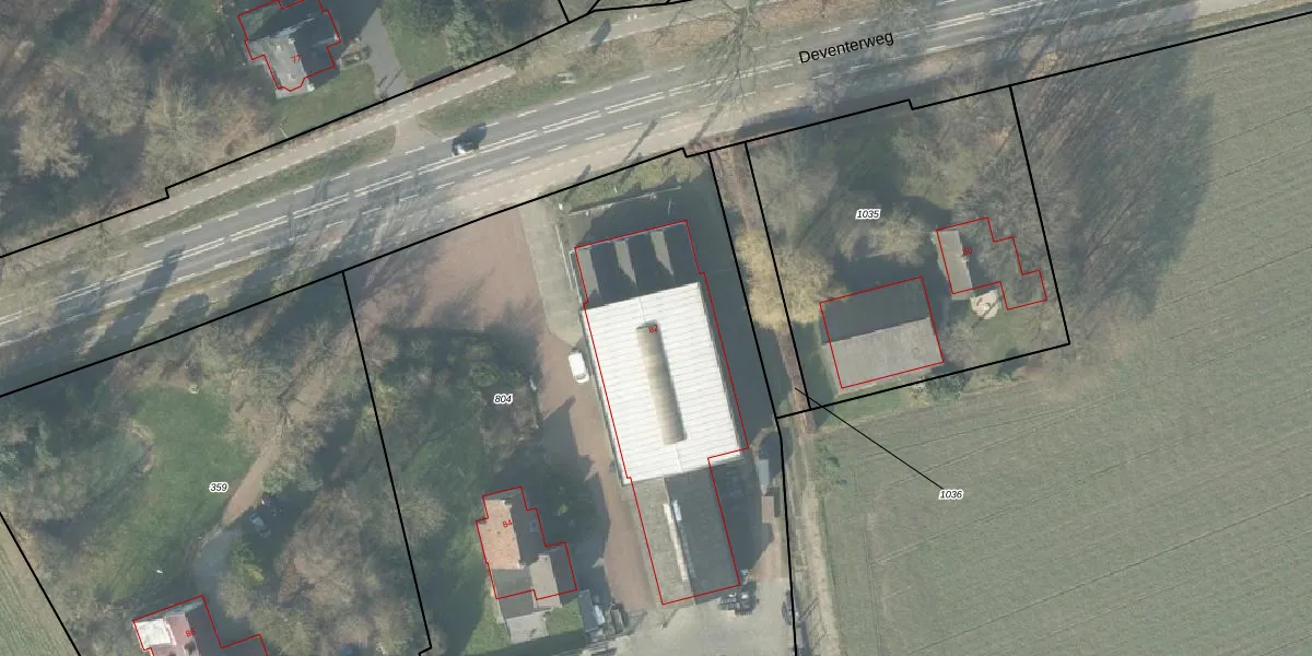 Deventerweg 82 is gelegen op kadastraal perceel HTN03H804. Deze kadastrale aanduiding is uniek en wordt gebruikt door het Kadaster om eigendomsrechten en andere zakelijke rechten vast te leggen. Het perceel maakt onderdeel uit van de kadastrale gemeente Holten.