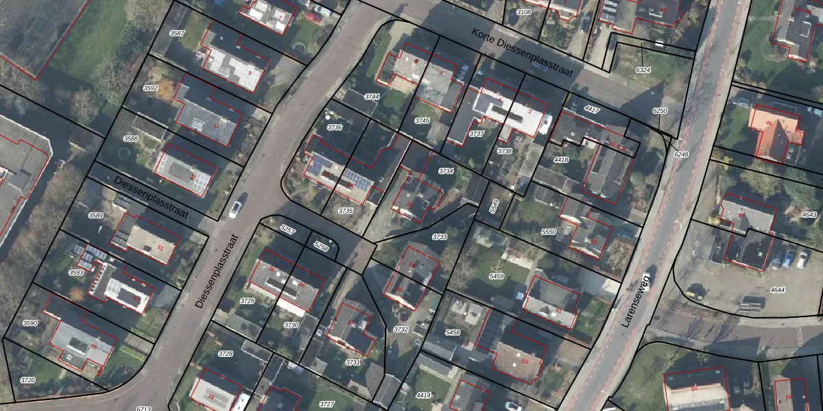 Het perceel waarop Diessenplasstraat 26 staat heeft een oppervlakte van 392 m². Dit is een groot perceel. De perceeloppervlakte wordt geregistreerd door het Kadaster. Gedetailleerde informatie over de maten van dit perceel kunt u vinden in het rapport Kadastrale kaart met maatvoering van Diessenplasstraat 26.