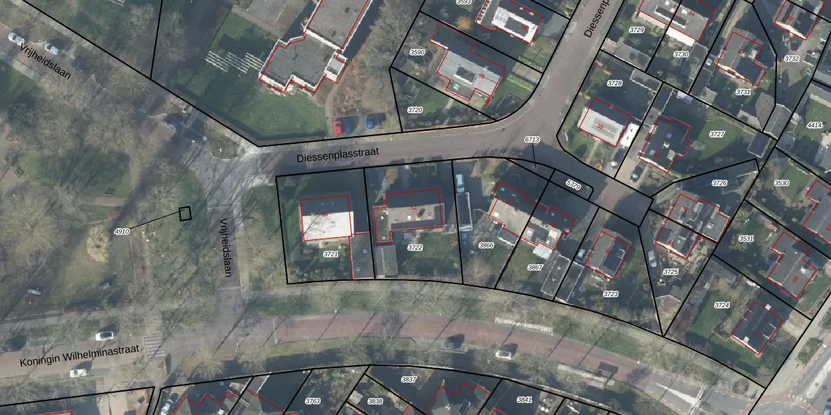 Het perceel waarop Diessenplasstraat 52 staat heeft een oppervlakte van 592 m². Dit is een groot perceel. De perceeloppervlakte wordt geregistreerd door het Kadaster. Gedetailleerde informatie over de maten van dit perceel kunt u vinden in het rapport Kadastrale kaart met maatvoering van Diessenplasstraat 52.