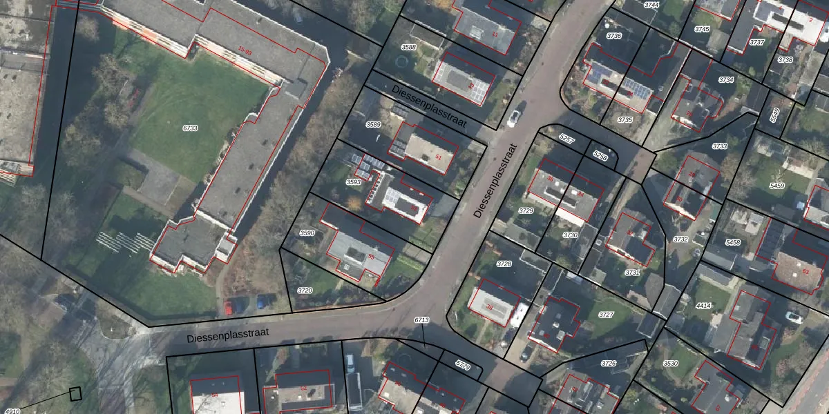 Gebruik de zoekbalk of klik op een perceel voor informatie over de adressen binnen dit perceel.
