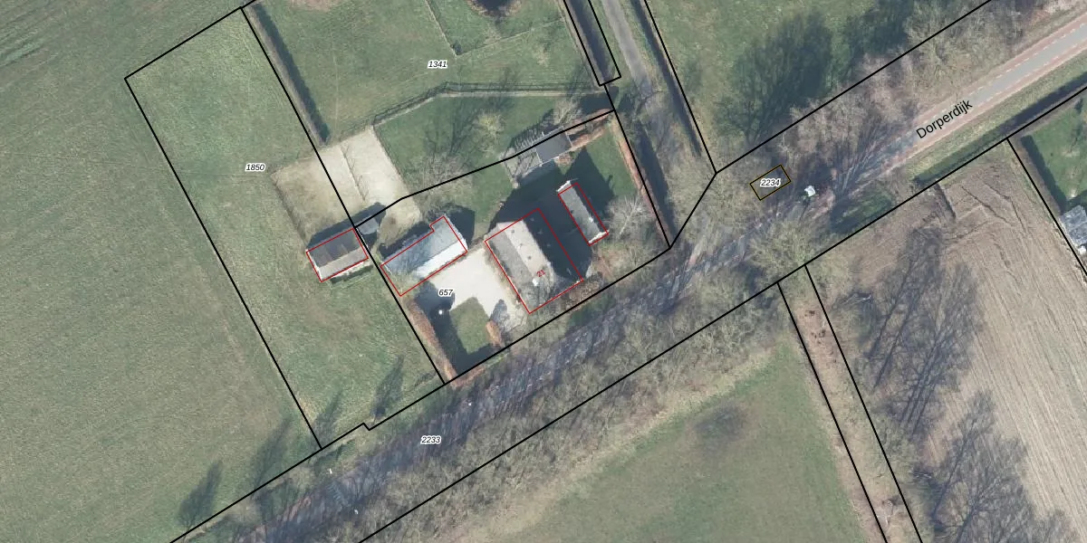 Het perceel waarop Dorperdijk 21 staat heeft een oppervlakte van 1540 m². Dit is een zeer groot perceel. De perceeloppervlakte wordt geregistreerd door het Kadaster. Gedetailleerde informatie over de maten van dit perceel kunt u vinden in het rapport Kadastrale kaart met maatvoering van Dorperdijk 21.