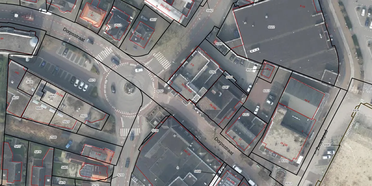 Het perceel waarop Dorpsstraat 31-101 staat heeft een oppervlakte van 858 m². Dit is een groot perceel. De perceeloppervlakte wordt geregistreerd door het Kadaster. Gedetailleerde informatie over de maten van dit perceel kunt u vinden in het rapport Kadastrale kaart met maatvoering van Dorpsstraat 31-101.