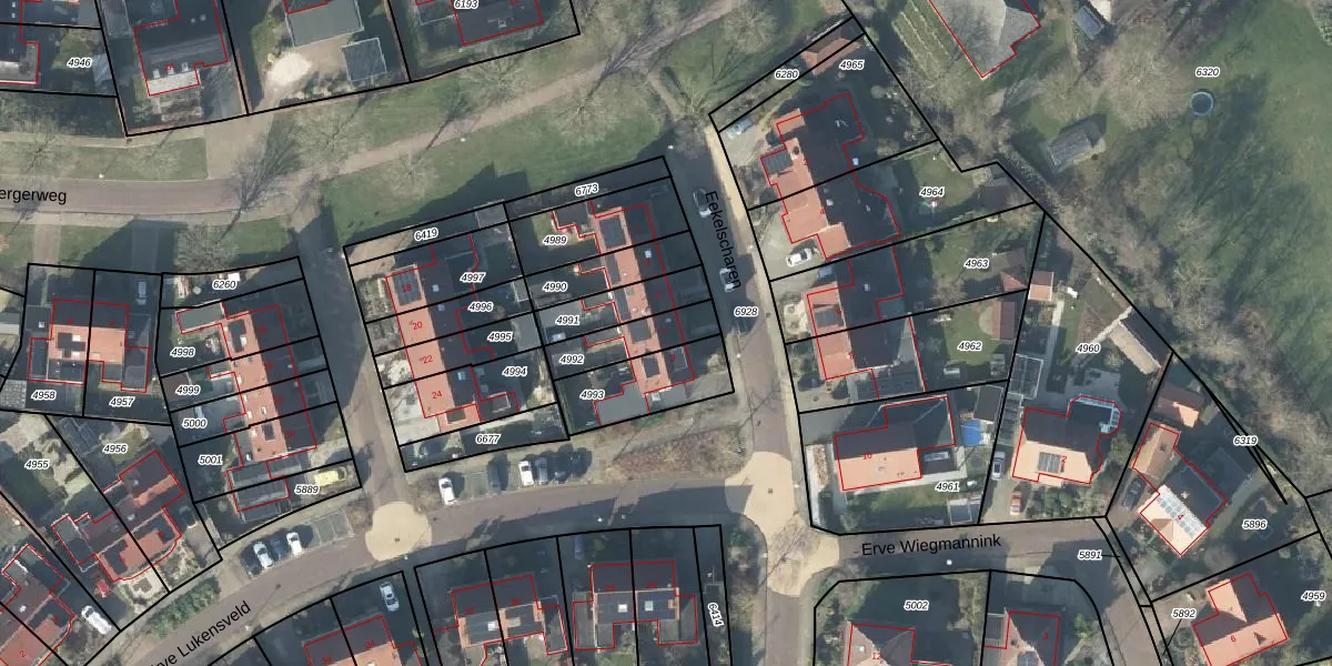 Gebruik de zoekbalk of klik op een perceel voor informatie over de adressen binnen dit perceel.
