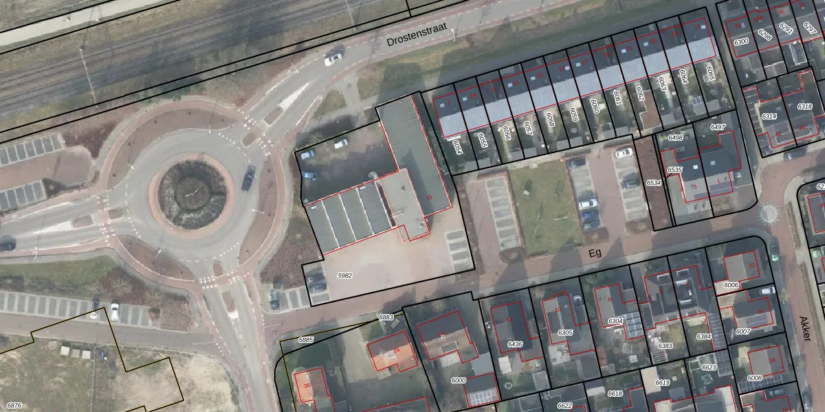 Het perceel waarop Eg 15 staat heeft een oppervlakte van 1495 m². Dit is een zeer groot perceel. De perceeloppervlakte wordt geregistreerd door het Kadaster. Gedetailleerde informatie over de maten van dit perceel kunt u vinden in het rapport Kadastrale kaart met maatvoering van Eg 15.