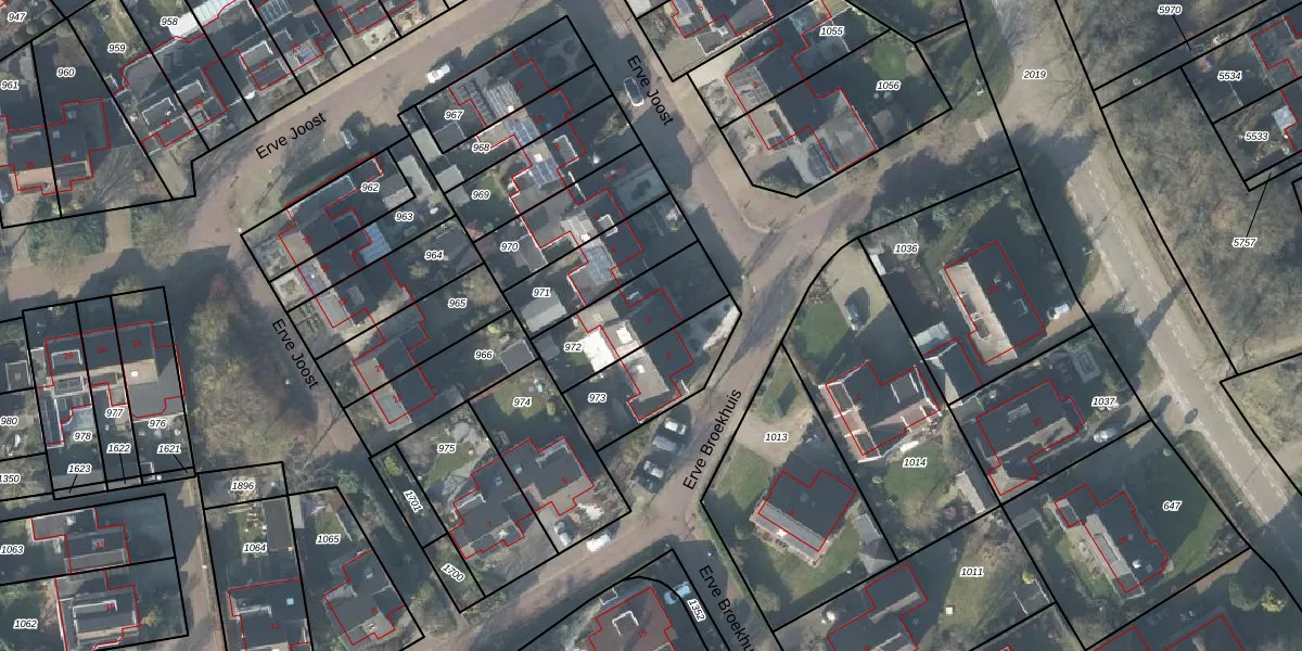 Het perceel waarop Erve Joost 2 staat heeft een oppervlakte van 288 m². Dit is een middelgroot perceel. De perceeloppervlakte wordt geregistreerd door het Kadaster. Gedetailleerde informatie over de maten van dit perceel kunt u vinden in het rapport Kadastrale kaart met maatvoering van Erve Joost 2.