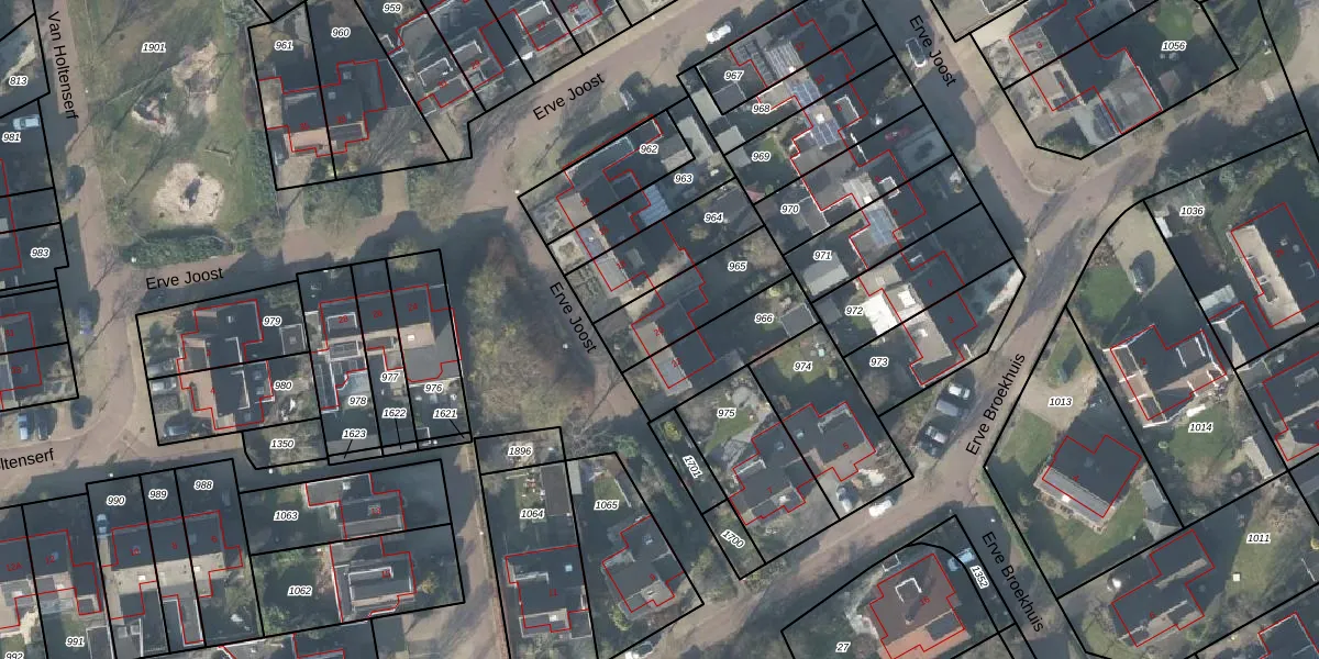 Het perceel waarop Erve Joost 20 staat heeft een oppervlakte van 257 m². Dit is een middelgroot perceel. De perceeloppervlakte wordt geregistreerd door het Kadaster. Gedetailleerde informatie over de maten van dit perceel kunt u vinden in het rapport Kadastrale kaart met maatvoering van Erve Joost 20.