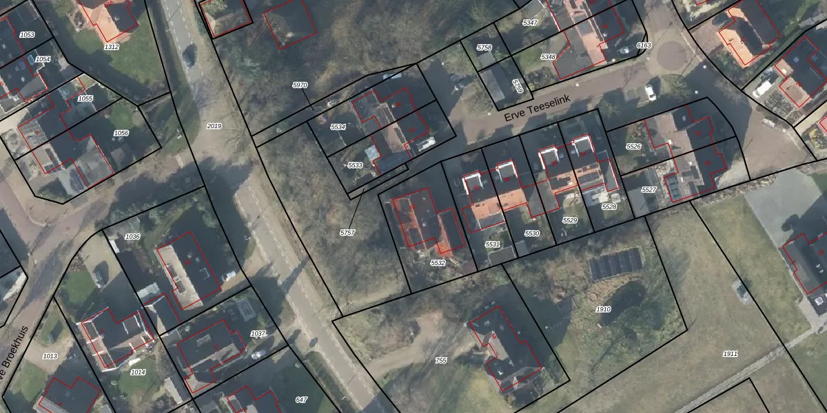 Het perceel waarop Erve Teeselink 42 staat heeft een oppervlakte van 454 m². Dit is een groot perceel. De perceeloppervlakte wordt geregistreerd door het Kadaster. Gedetailleerde informatie over de maten van dit perceel kunt u vinden in het rapport Kadastrale kaart met maatvoering van Erve Teeselink 42.