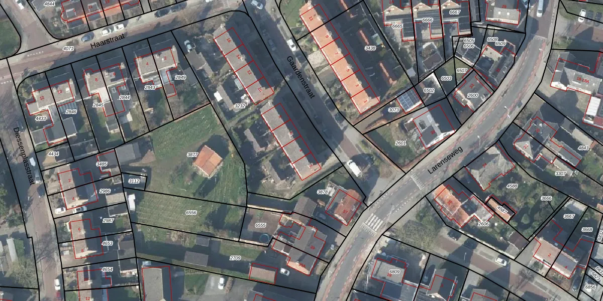 Gaardenstraat 4 is gelegen op kadastraal perceel HTN03F3232. Deze kadastrale aanduiding is uniek en wordt gebruikt door het Kadaster om eigendomsrechten en andere zakelijke rechten vast te leggen. Het perceel maakt onderdeel uit van de kadastrale gemeente Holten.