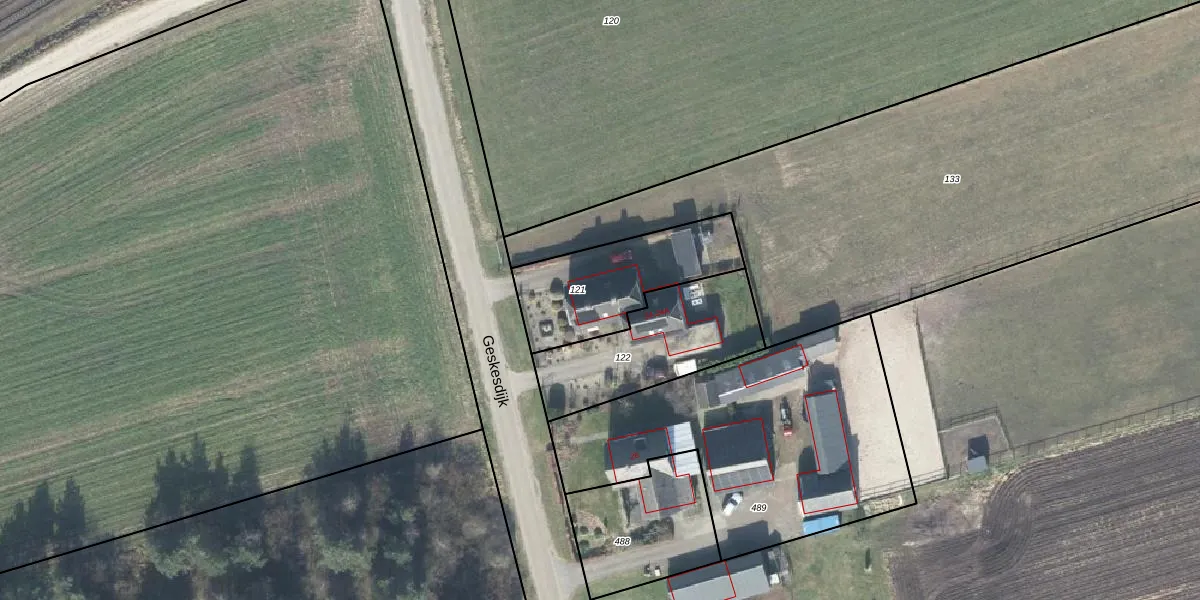 Het perceel waarop Geskesdijk 24 staat heeft een oppervlakte van 475 m². Dit is een groot perceel. De perceeloppervlakte wordt geregistreerd door het Kadaster. Gedetailleerde informatie over de maten van dit perceel kunt u vinden in het rapport Kadastrale kaart met maatvoering van Geskesdijk 24.
