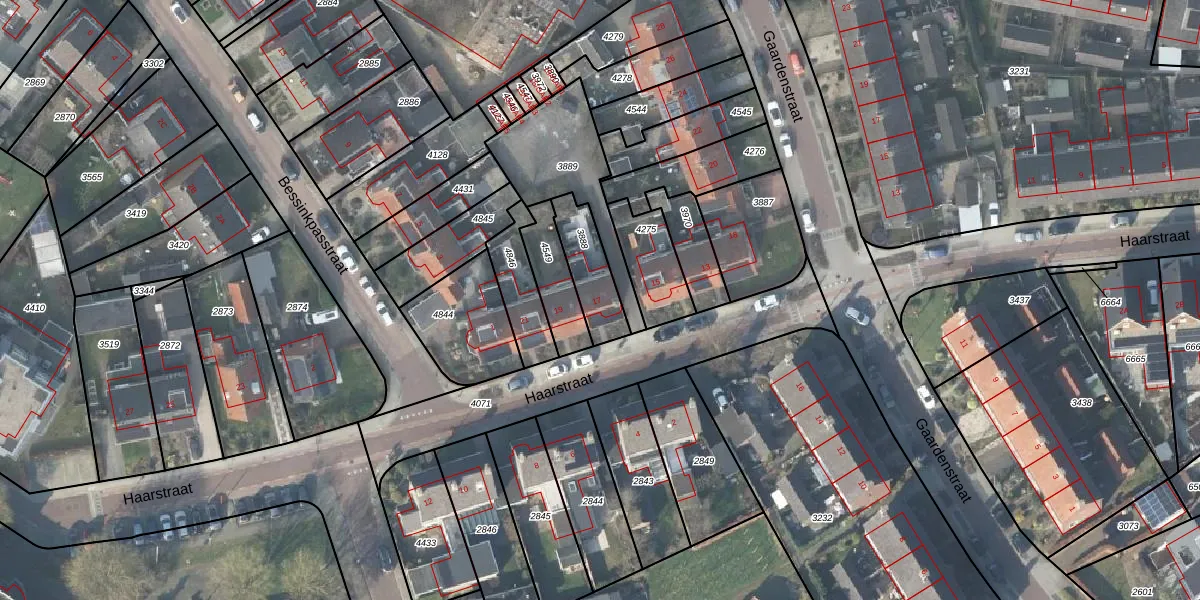 Gebruik de zoekbalk of klik op een perceel voor informatie over de adressen binnen dit perceel.