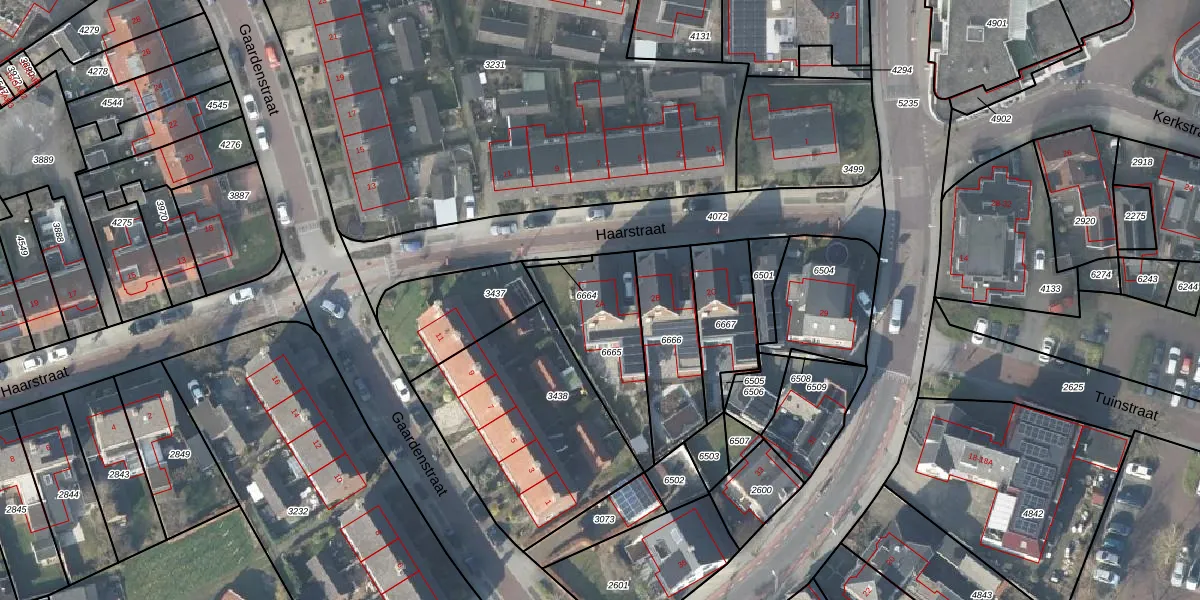 Gebruik de zoekbalk of klik op een perceel voor informatie over de adressen binnen dit perceel.