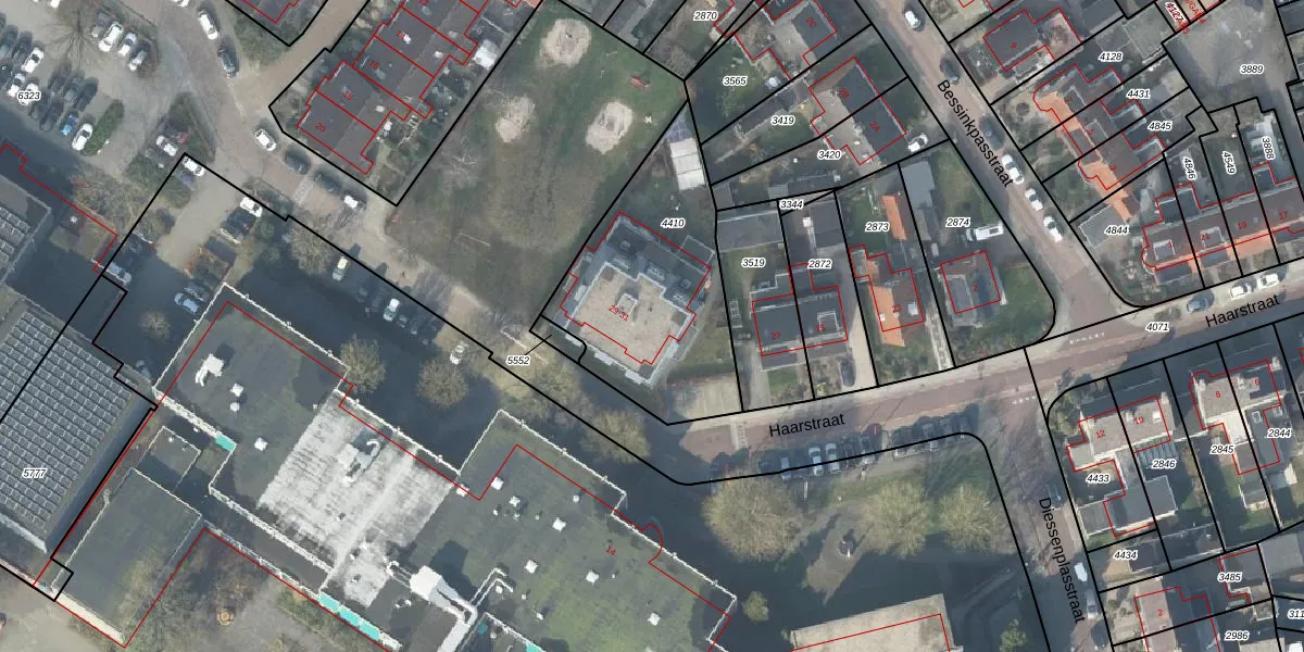 Het perceel waarop Haarstraat 29 staat heeft een oppervlakte van 837 m². Dit is een groot perceel. De perceeloppervlakte wordt geregistreerd door het Kadaster. Gedetailleerde informatie over de maten van dit perceel kunt u vinden in het rapport Kadastrale kaart met maatvoering van Haarstraat 29.