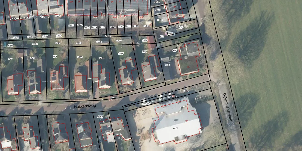Het perceel waarop Hakkertsweg 1 staat heeft een oppervlakte van 440 m². Dit is een groot perceel. De perceeloppervlakte wordt geregistreerd door het Kadaster. Gedetailleerde informatie over de maten van dit perceel kunt u vinden in het rapport Kadastrale kaart met maatvoering van Hakkertsweg 1.