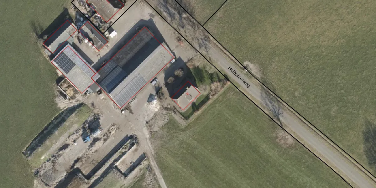 Het perceel waarop Helhuizerweg 24 staat heeft een oppervlakte van 9,4 ha. Dit is een zeer groot perceel. De perceeloppervlakte wordt geregistreerd door het Kadaster. Gedetailleerde informatie over de maten van dit perceel kunt u vinden in het rapport Kadastrale kaart met maatvoering van Helhuizerweg 24.