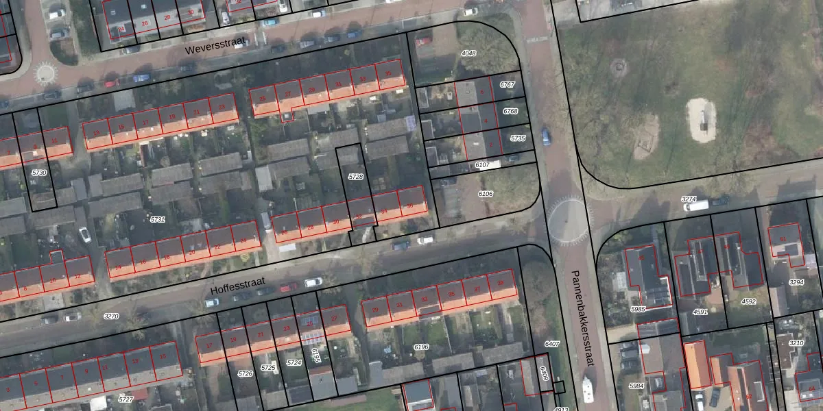 Het perceel waarop Hoffesstraat 36 staat heeft een oppervlakte van 6370 m². Dit is een zeer groot perceel. De perceeloppervlakte wordt geregistreerd door het Kadaster. Gedetailleerde informatie over de maten van dit perceel kunt u vinden in het rapport Kadastrale kaart met maatvoering van Hoffesstraat 36.