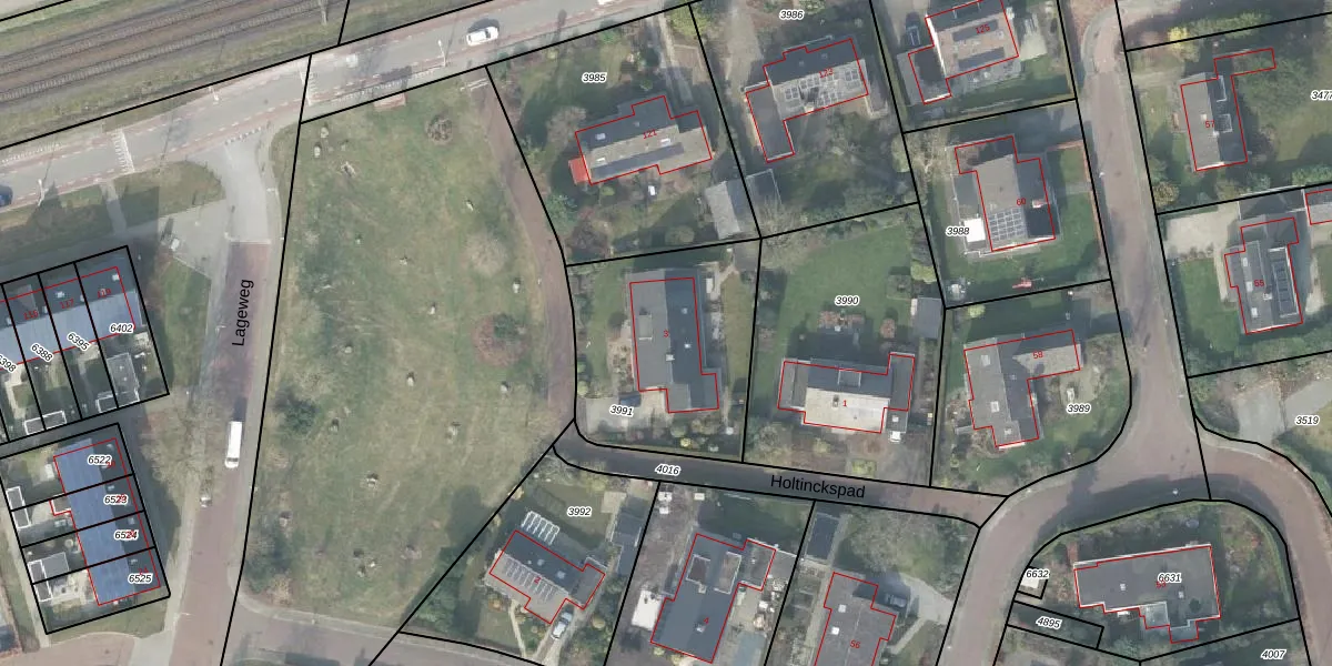 Het perceel waarop Holtinckspad 3 staat heeft een oppervlakte van 802 m². Dit is een groot perceel. De perceeloppervlakte wordt geregistreerd door het Kadaster. Gedetailleerde informatie over de maten van dit perceel kunt u vinden in het rapport Kadastrale kaart met maatvoering van Holtinckspad 3.