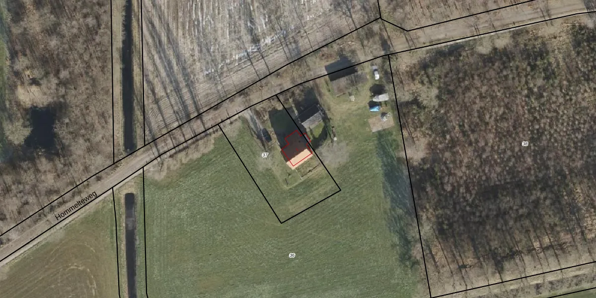 Hommelteweg 1 is gelegen op kadastraal perceel HTN03G37. Deze kadastrale aanduiding is uniek en wordt gebruikt door het Kadaster om eigendomsrechten en andere zakelijke rechten vast te leggen. Het perceel maakt onderdeel uit van de kadastrale gemeente Holten.