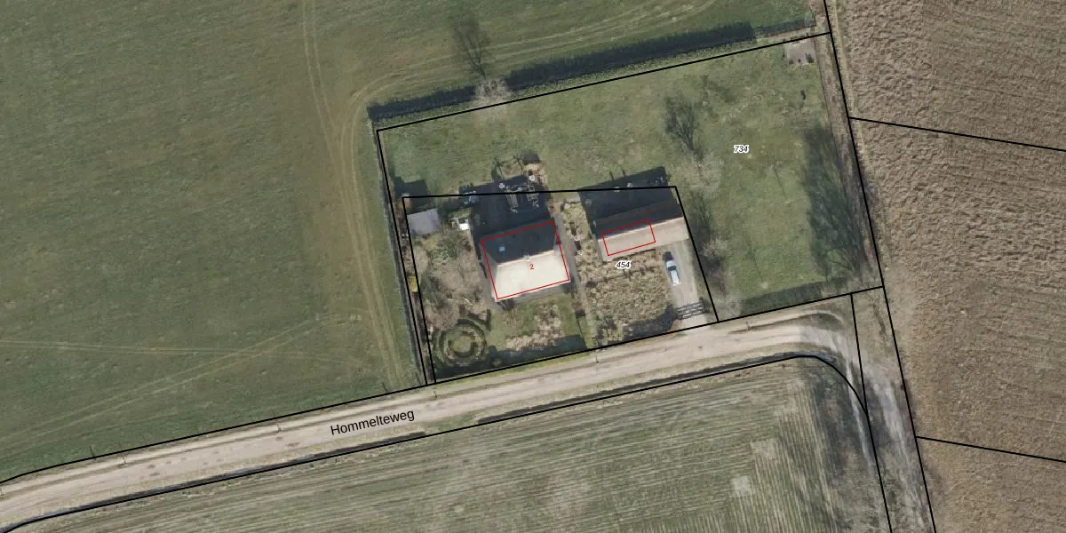 Hommelteweg 2 is gelegen op kadastraal perceel HTN03G454. Deze kadastrale aanduiding is uniek en wordt gebruikt door het Kadaster om eigendomsrechten en andere zakelijke rechten vast te leggen. Het perceel maakt onderdeel uit van de kadastrale gemeente Holten.