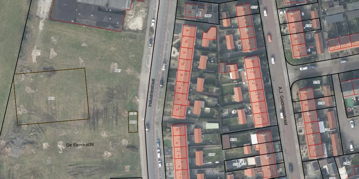 Het perceel waarop Industriestraat 18 staat heeft een oppervlakte van 5817 m². Dit is een zeer groot perceel. De perceeloppervlakte wordt geregistreerd door het Kadaster. Gedetailleerde informatie over de maten van dit perceel kunt u vinden in het rapport Kadastrale kaart met maatvoering van Industriestraat 18.