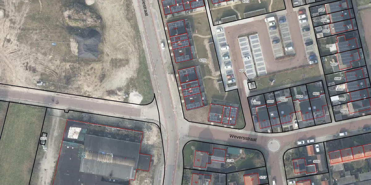 Het perceel waarop Industriestraat 32-B staat heeft een oppervlakte van 1955 m². Dit is een zeer groot perceel. De perceeloppervlakte wordt geregistreerd door het Kadaster. Gedetailleerde informatie over de maten van dit perceel kunt u vinden in het rapport Kadastrale kaart met maatvoering van Industriestraat 32-B.