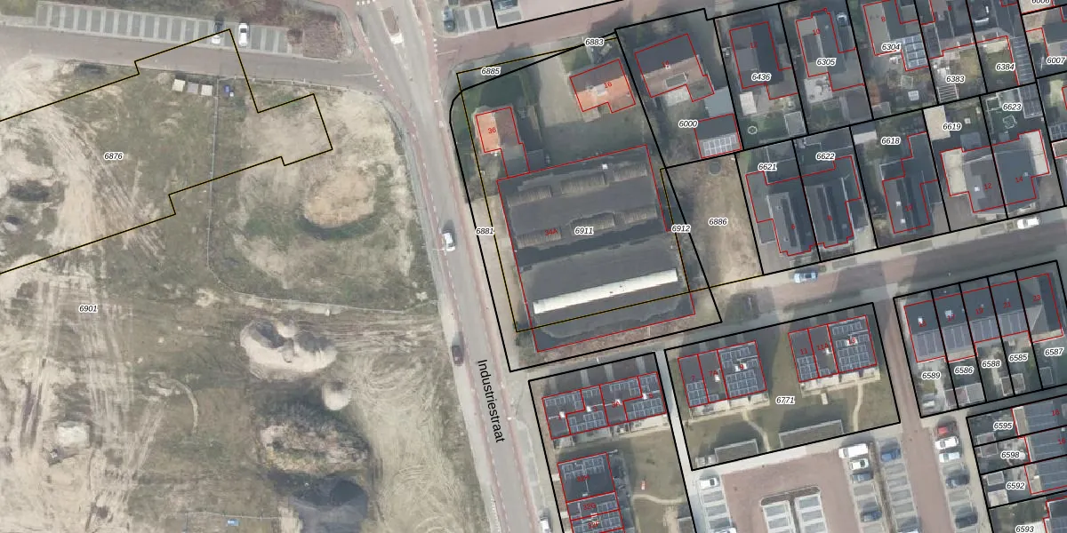 Het perceel waarop Industriestraat 40-102 staat heeft een oppervlakte van 1593 m². Dit is een zeer groot perceel. De perceeloppervlakte wordt geregistreerd door het Kadaster. Gedetailleerde informatie over de maten van dit perceel kunt u vinden in het rapport Kadastrale kaart met maatvoering van Industriestraat 40-102.