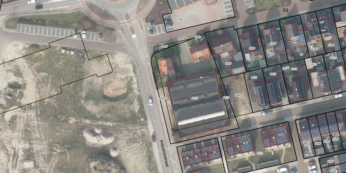Het perceel waarop Industriestraat 40-104 staat heeft een oppervlakte van 1593 m². Dit is een zeer groot perceel. De perceeloppervlakte wordt geregistreerd door het Kadaster. Gedetailleerde informatie over de maten van dit perceel kunt u vinden in het rapport Kadastrale kaart met maatvoering van Industriestraat 40-104.
