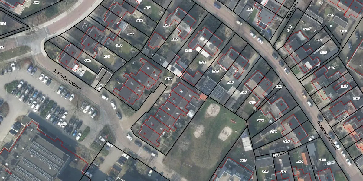 Het perceel waarop J. Rietbergstraat 10 staat heeft een oppervlakte van 1548 m². Dit is een zeer groot perceel. De perceeloppervlakte wordt geregistreerd door het Kadaster. Gedetailleerde informatie over de maten van dit perceel kunt u vinden in het rapport Kadastrale kaart met maatvoering van J. Rietbergstraat 10.