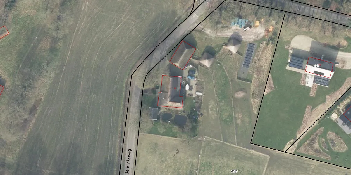 Jeurlinksweg 18 is gelegen op kadastraal perceel HTN03F6650. Deze kadastrale aanduiding is uniek en wordt gebruikt door het Kadaster om eigendomsrechten en andere zakelijke rechten vast te leggen. Het perceel maakt onderdeel uit van de kadastrale gemeente Holten.