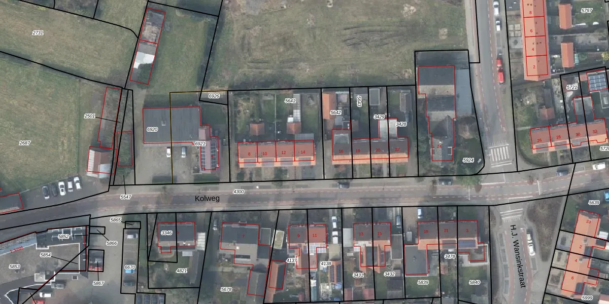 Het perceel waarop Kolweg 14 staat heeft een oppervlakte van 921 m². Dit is een groot perceel. De perceeloppervlakte wordt geregistreerd door het Kadaster. Gedetailleerde informatie over de maten van dit perceel kunt u vinden in het rapport Kadastrale kaart met maatvoering van Kolweg 14.