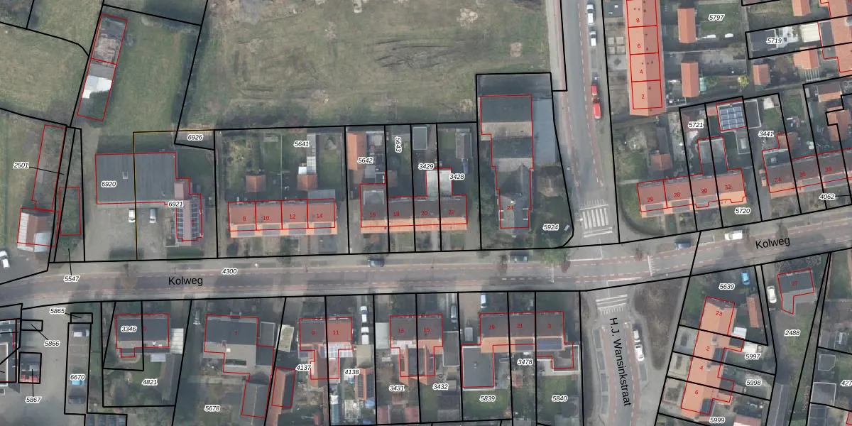 Het perceel waarop Kolweg 20 staat heeft een oppervlakte van 182 m². Dit is een middelgroot perceel. De perceeloppervlakte wordt geregistreerd door het Kadaster. Gedetailleerde informatie over de maten van dit perceel kunt u vinden in het rapport Kadastrale kaart met maatvoering van Kolweg 20.