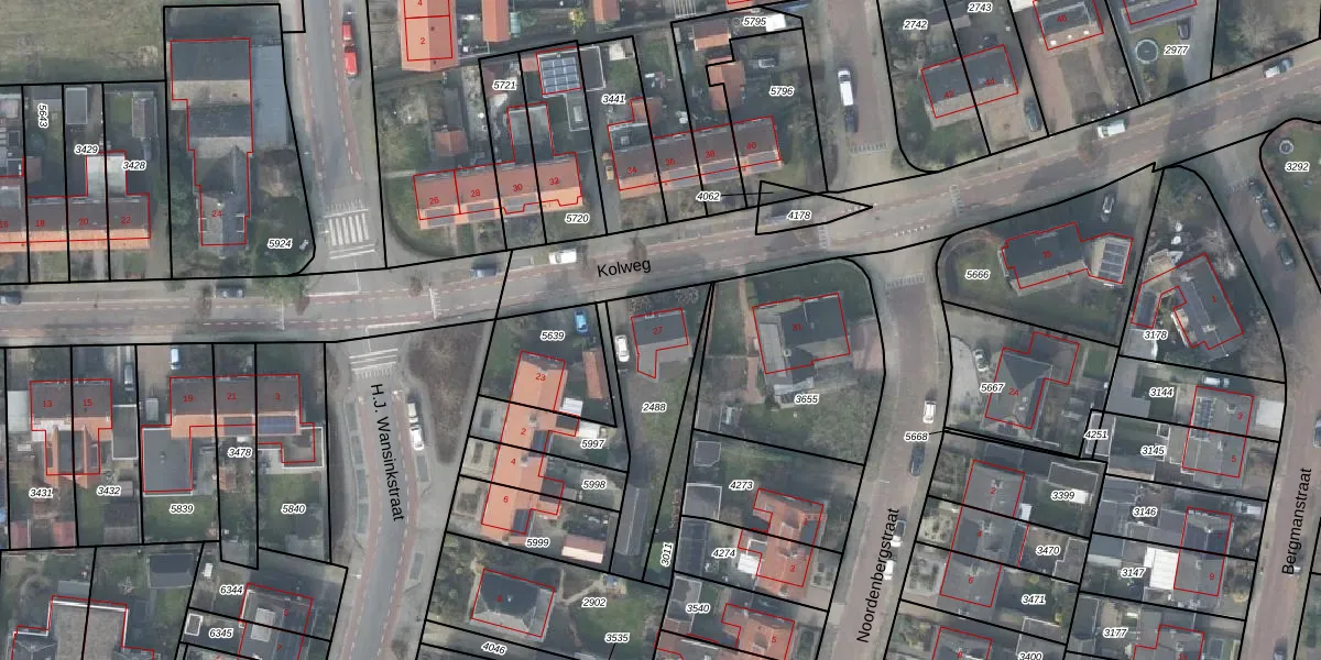 Het perceel waarop Kolweg 27 staat heeft een oppervlakte van 390 m². Dit is een groot perceel. De perceeloppervlakte wordt geregistreerd door het Kadaster. Gedetailleerde informatie over de maten van dit perceel kunt u vinden in het rapport Kadastrale kaart met maatvoering van Kolweg 27.