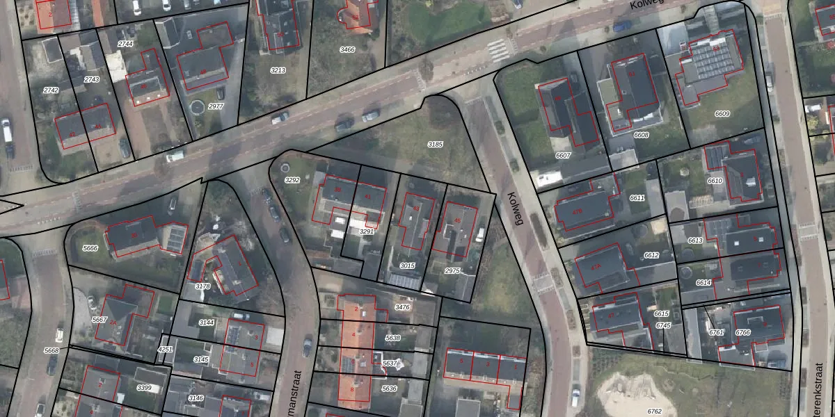 Het perceel waarop Kolweg 43 staat heeft een oppervlakte van 301 m². Dit is een groot perceel. De perceeloppervlakte wordt geregistreerd door het Kadaster. Gedetailleerde informatie over de maten van dit perceel kunt u vinden in het rapport Kadastrale kaart met maatvoering van Kolweg 43.