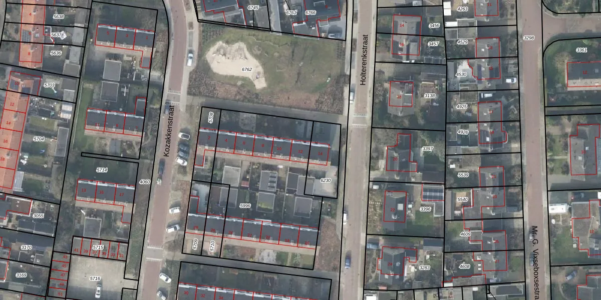 Kozakkenstraat 12 is gelegen op kadastraal perceel HTN03F5996. Deze kadastrale aanduiding is uniek en wordt gebruikt door het Kadaster om eigendomsrechten en andere zakelijke rechten vast te leggen. Het perceel maakt onderdeel uit van de kadastrale gemeente Holten.