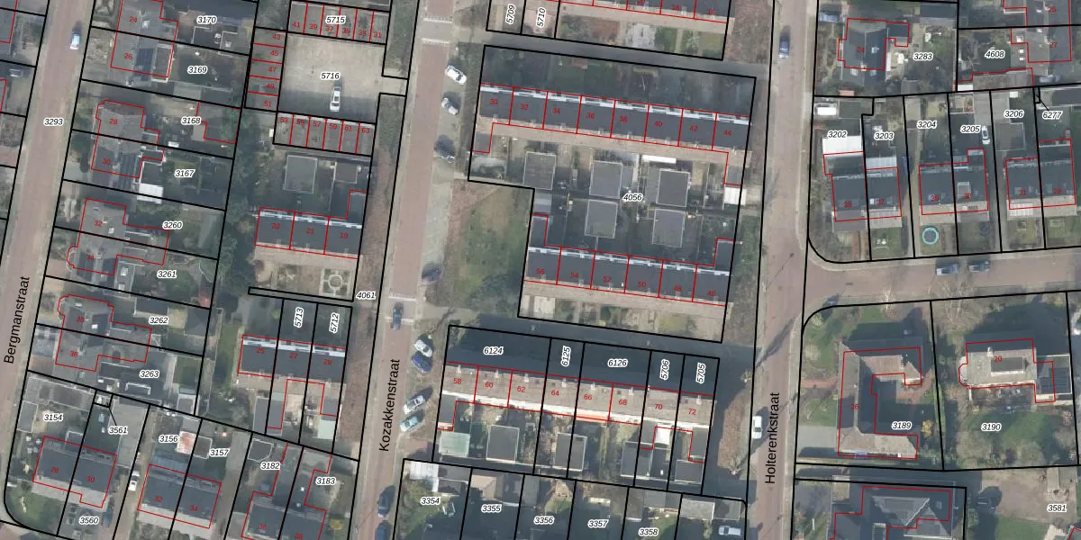 Kozakkenstraat 56 is gelegen op kadastraal perceel HTN03F4056. Deze kadastrale aanduiding is uniek en wordt gebruikt door het Kadaster om eigendomsrechten en andere zakelijke rechten vast te leggen. Het perceel maakt onderdeel uit van de kadastrale gemeente Holten.